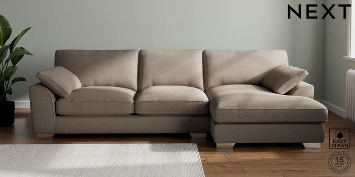 7.3.1 Buy Stamford Grand Relaxed Sit Large Sofa Chaise - Right Hand Fine Chenille Easy Clean Mid Taupe Brown Large Square Angle - Chrome Metal from the Seasons online shop