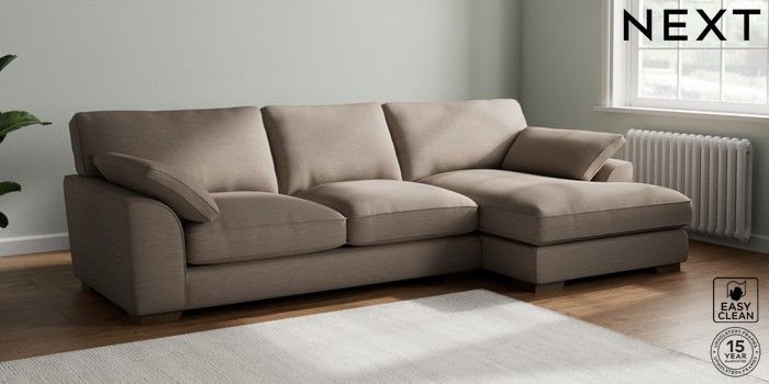 7.3.1 Buy Stamford Grand Relaxed Sit Large Sofa Chaise - Right Hand Fine Chenille Easy Clean Mid Taupe Brown Large Square Angle - Mid from the Seasons online shop Click here to use our website with more accessibility support, for example screen readers
