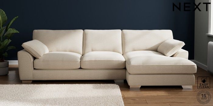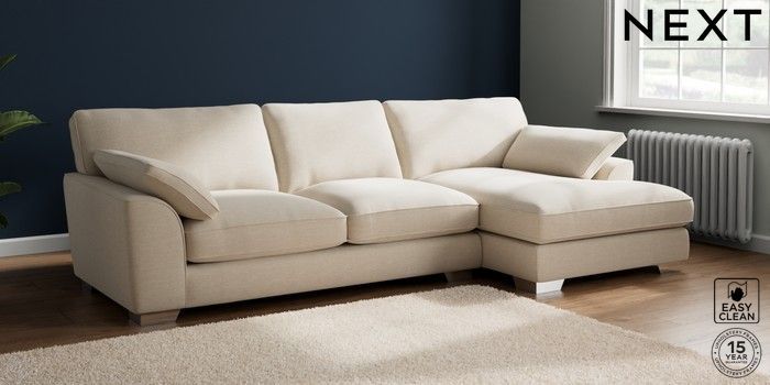 7.3.1 Buy Stamford Grand Relaxed Sit Large Sofa Chaise - Right Hand Fine Chenille Easy Clean Oyster Large Square Angle - Chrome Metal from the Seasons online shop Click here to use our website with more accessibility support, for example screen readers