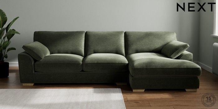 7.3.1 Buy Stamford Grand Relaxed Sit Large Sofa Chaise - Right Hand Luxe Chenille Mid Green Large Square Angle - Light from the Seasons online shop Click here to use our website with more accessibility support, for example screen readers