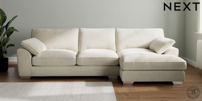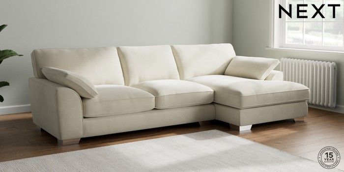 7.3.1 Buy Stamford Grand Relaxed Sit Large Sofa Chaise - Right Hand Luxe Chenille Oyster Large Square Angle - Chrome Metal from the Seasons online shop Click here to use our website with more accessibility support, for example screen readers