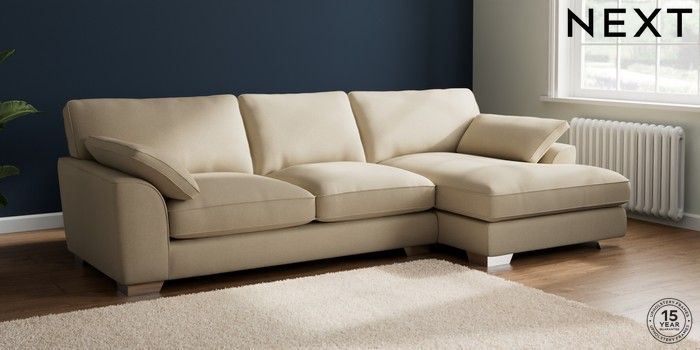 7.3.1 Buy Stamford Grand Relaxed Sit Large Sofa Chaise - Right Hand Natural Mix Light Natural Large Square Angle - Chrome Metal from the Seasons online shop Click here to use our website with more accessibility support, for example screen readers