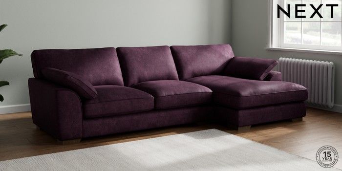 7.3.1 Buy Stamford Grand Relaxed Sit Large Sofa Chaise - Right Hand Plush Chenille Dark Plum Purple Large Square Angle - Mid from the Seasons online shop Click here to use our website with more accessibility support, for example screen readers
