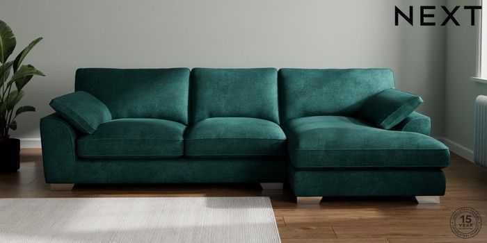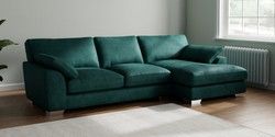 7.3.1 Buy Stamford Grand Relaxed Sit Large Sofa Chaise - Right Hand Plush Chenille Dark Teal Green Large Square Angle - Chrome Metal from the Seasons online shop Click here to use our website with more accessibility support, for example screen readers