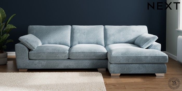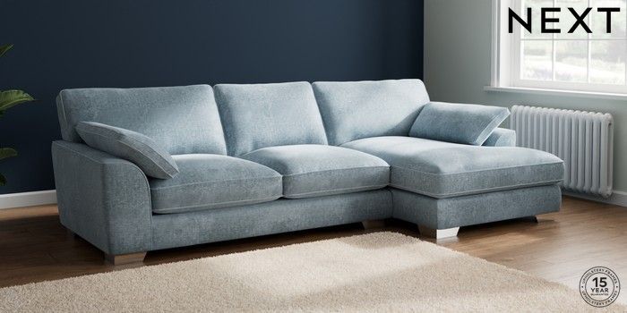 7.3.1 Buy Stamford Grand Relaxed Sit Large Sofa Chaise - Right Hand Plush Chenille Light Blue Large Square Angle - Chrome Metal from the Seasons online shop Click here to use our website with more accessibility support, for example screen readers