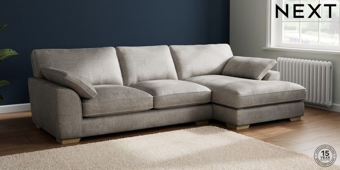 7.2.10 Buy Stamford Grand Relaxed Sit Large Sofa Chaise - Right Hand Plush Chenille Light Grey Large Square Angle - Light from the Seasons online shop Click here to use our website with more accessibility support, for example screen readers