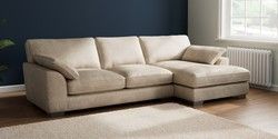 7.3.1 Buy Stamford Grand Relaxed Sit Large Sofa Chaise - Right Hand Plush Chenille Light Natural Large Square Angle - Gunmetal from the Seasons online shop Click here to use our website with more accessibility support, for example screen readers