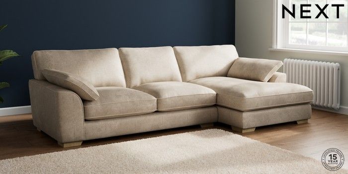 7.3.1 Buy Stamford Grand Relaxed Sit Large Sofa Chaise - Right Hand Plush Chenille Light Natural Large Square Angle - Light from the Seasons online shop Click here to use our website with more accessibility support, for example screen readers