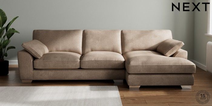 7.3.1 Buy Stamford Grand Relaxed Sit Large Sofa Chaise - Right Hand Plush Chenille Mid Natural Large Square Angle - Chrome Metal from the Seasons online shop Click here to use our website with more accessibility support, for example screen readers