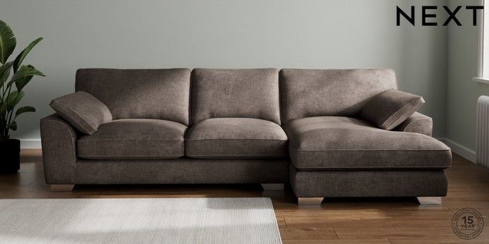 7.3.1 Buy Stamford Grand Relaxed Sit Large Sofa Chaise - Right Hand Plush Chenille Mink Brown Large Square Angle - Chrome Metal from the Seasons online shop Click here to use our website with more accessibility support, for example screen readers
