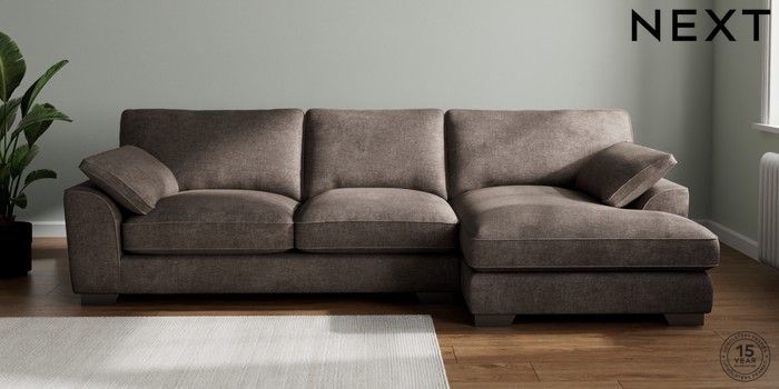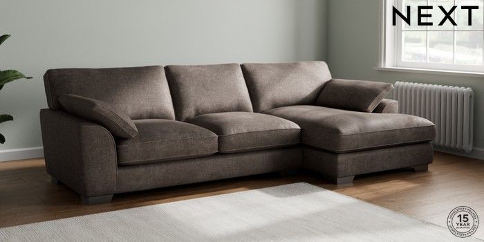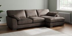 7.3.1 Buy Stamford Grand Relaxed Sit Large Sofa Chaise - Right Hand Plush Chenille Mink Brown Large Square Angle - Gunmetal from the Seasons online shop Click here to use our website with more accessibility support, for example screen readers