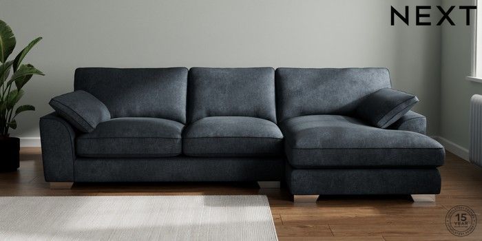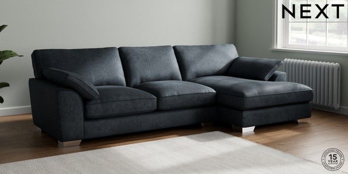 7.3.1 Buy Stamford Grand Relaxed Sit Large Sofa Chaise - Right Hand Plush Chenille Slate Blue Large Square Angle - Chrome Metal from the Seasons online shop Click here to use our website with more accessibility support, for example screen readers