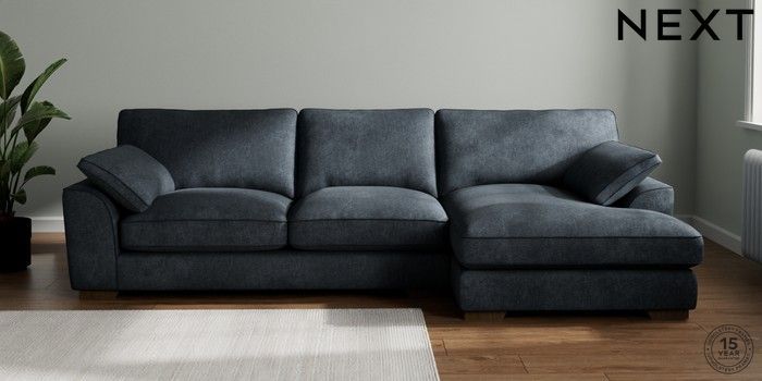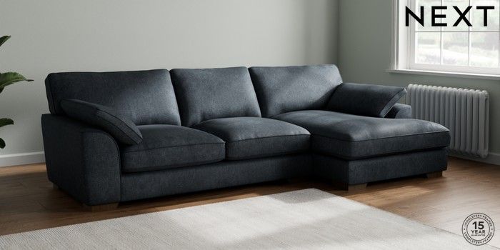 7.3.1 Buy Stamford Grand Relaxed Sit Large Sofa Chaise - Right Hand Plush Chenille Slate Blue Large Square Angle - Mid from the Seasons online shop Click here to use our website with more accessibility support, for example screen readers