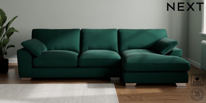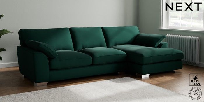 7.3.1 Buy Stamford Grand Relaxed Sit Large Sofa Chaise - Right Hand Plush Velvet Easy Clean Bottle Green Large Square Angle - Chrome Metal from the Seasons online shop