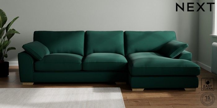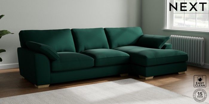 7.3.1 Buy Stamford Grand Relaxed Sit Large Sofa Chaise - Right Hand Plush Velvet Easy Clean Bottle Green Large Square Angle - Light from the Seasons online shop Click here to use our website with more accessibility support, for example screen readers