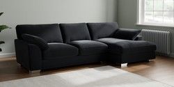 7.3.1 Buy Stamford Grand Relaxed Sit Large Sofa Chaise - Right Hand Plush Velvet Easy Clean Charcoal Grey Large Square Angle - Chrome Metal from the Seasons online shop