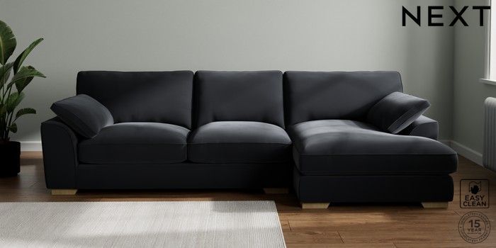 7.3.1 Buy Stamford Grand Relaxed Sit Large Sofa Chaise - Right Hand Plush Velvet Easy Clean Charcoal Grey Large Square Angle - Light from the Seasons online shop Click here to use our website with more accessibility support, for example screen readers