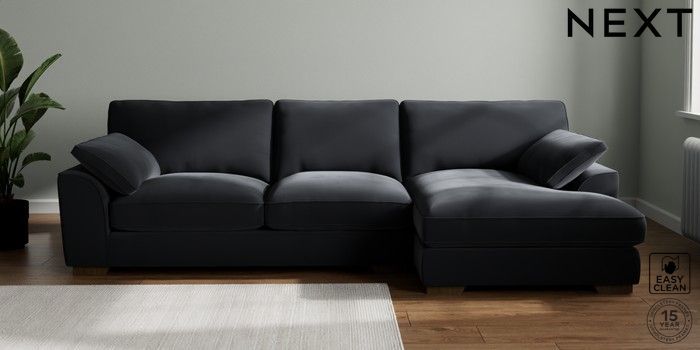 7.3.1 Buy Stamford Grand Relaxed Sit Large Sofa Chaise - Right Hand Plush Velvet Easy Clean Charcoal Grey Large Square Angle - Mid from the Seasons online shop Click here to use our website with more accessibility support, for example screen readers