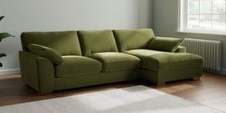 7.3.1 Buy Stamford Grand Relaxed Sit Large Sofa Chaise - Right Hand Plush Velvet Easy Clean Mid Olive Green Large Square Angle - Brushed Brass from the Seasons online shop