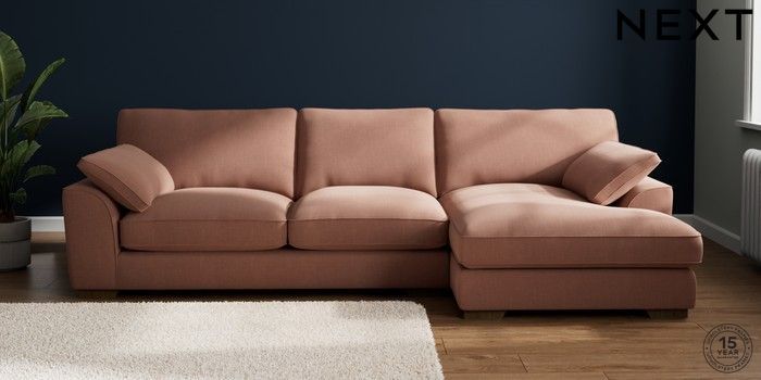 7.3.1 Buy Stamford Grand Relaxed Sit Large Sofa Chaise - Right Hand Relaxed Linen Look Light Rust Brown Large Square Angle - Mid from the Seasons online shop Click here to use our website with more accessibility support, for example screen readers