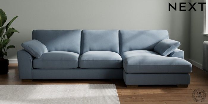 7.3.1 Buy Stamford Grand Relaxed Sit Large Sofa Chaise - Right Hand Relaxed Linen Look Mid Blue Large Square Angle - Mid from the Seasons online shop Click here to use our website with more accessibility support, for example screen readers