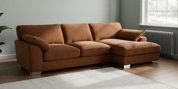 7.3.1 Buy Stamford Grand Relaxed Sit Large Sofa Chaise - Right Hand Ripple Chenille Mid Rust Brown Large Square Angle - Chrome Metal from the Seasons online shop Click here to use our website with more accessibility support, for example screen readers