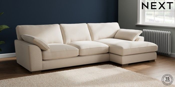 7.3.1 Buy Stamford Grand Relaxed Sit Large Sofa Chaise - Right Hand Studio Chenille Oyster Large Square Angle - Mid from the Seasons online shop Click here to use our website with more accessibility support, for example screen readers