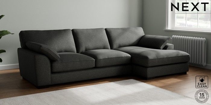 7.3.1 Buy Stamford Grand Relaxed Sit Large Sofa Chaise - Right Hand Tweedy Blend Easy Clean Charcoal Grey Large Square Angle - Dark from the Seasons online shop Click here to use our website with more accessibility support, for example screen readers