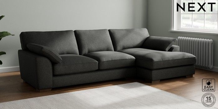 7.3.1 Buy Stamford Grand Relaxed Sit Large Sofa Chaise - Right Hand Tweedy Blend Easy Clean Charcoal Grey Large Square Angle - Mid from the Seasons online shop Click here to use our website with more accessibility support, for example screen readers