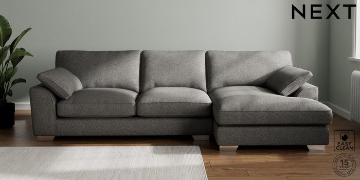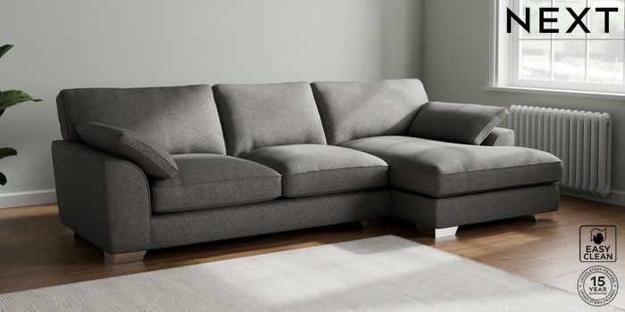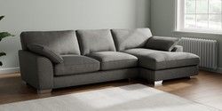 7.3.1 Buy Stamford Grand Relaxed Sit Large Sofa Chaise - Right Hand Tweedy Blend Easy Clean Dark Grey Large Square Angle - Chrome Metal from the Seasons online shop Click here to use our website with more accessibility support, for example screen readers
