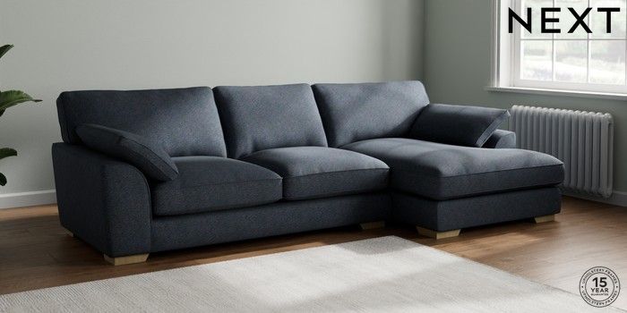 7.3.1 Buy Stamford Grand Relaxed Sit Large Sofa Chaise - Right Hand Tweedy Chenille Navy Blue Large Square Angle - Light from the Seasons online shop Click here to use our website with more accessibility support, for example screen readers
