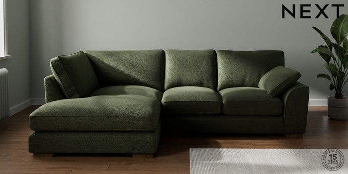 7.3.1 Buy Stamford Grand Relaxed Sit Medium Corner Chaise - Left Hand Boucle Chenille Dark Moss Green Large Square Angle - Mid from the Seasons online shop Click here to use our website with more accessibility support, for example screen readers