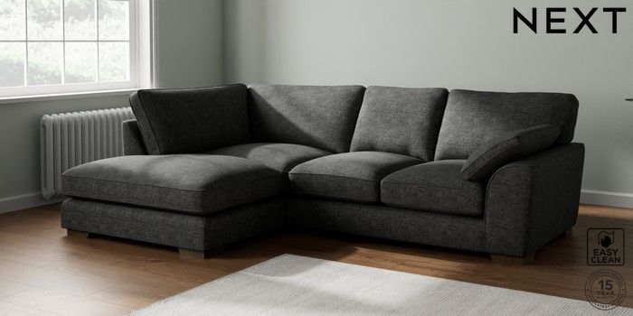 7.3.1 Buy Stamford Grand Relaxed Sit Medium Corner Chaise - Left Hand Boucle Weave Easy Clean Charcoal Grey Large Square Angle - Mid from the Seasons online shop Click here to use our website with more accessibility support, for example screen readers