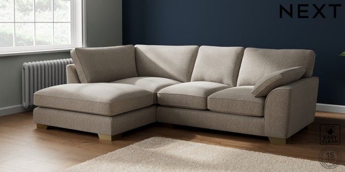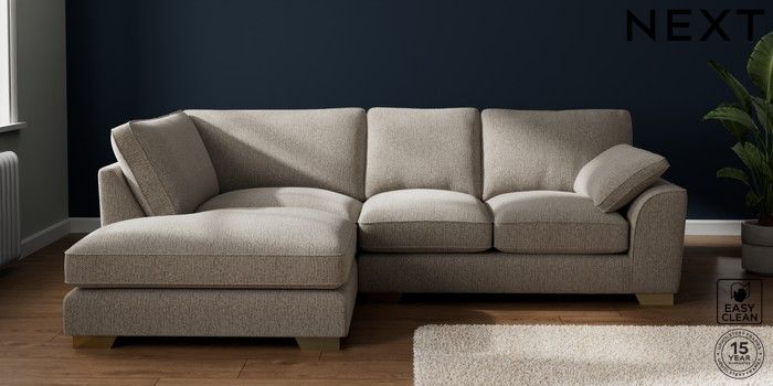7.3.1 Buy Stamford Grand Relaxed Sit Medium Corner Chaise - Left Hand Chunky Boucle Easy Clean Dove Large Square Angle - Brushed Brass from the Seasons online shop Click here to use our website with more accessibility support, for example screen readers