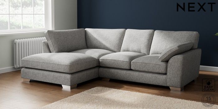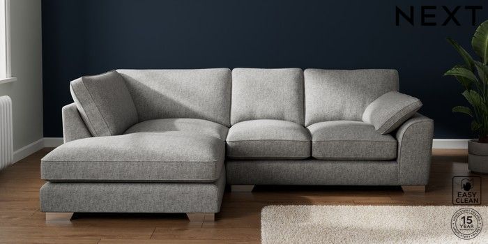 7.3.1 Buy Stamford Grand Relaxed Sit Medium Corner Chaise - Left Hand Chunky Boucle Easy Clean Light Grey Large Square Angle - Chrome Metal from the Seasons online shop Click here to use our website with more accessibility support, for example screen readers