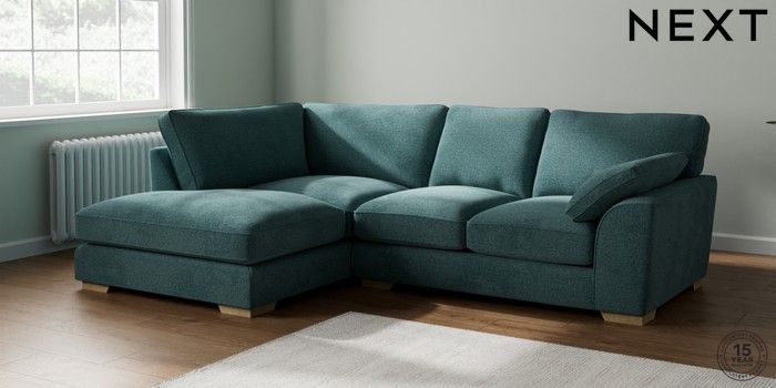 7.3.1 Buy Stamford Grand Relaxed Sit Medium Corner Chaise - Left Hand Chunky Chenille Mid Teal Green Large Square Angle - Light from the Seasons online shop Click here to use our website with more accessibility support, for example screen readers