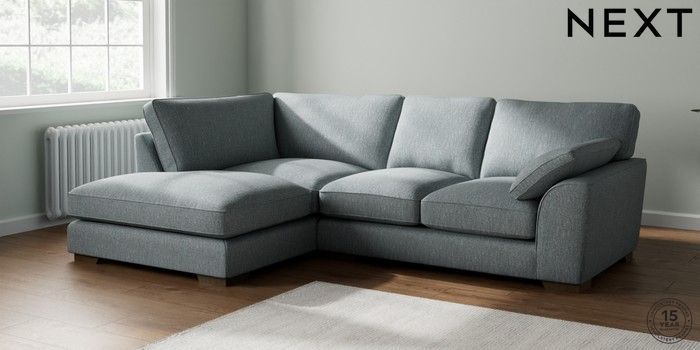 7.2.10 Buy Stamford Grand Relaxed Sit Medium Corner Chaise - Left Hand Chunky Weave Mid Blue Large Square Angle - Mid from the Seasons online shop Click here to use our website with more accessibility support, for example screen readers