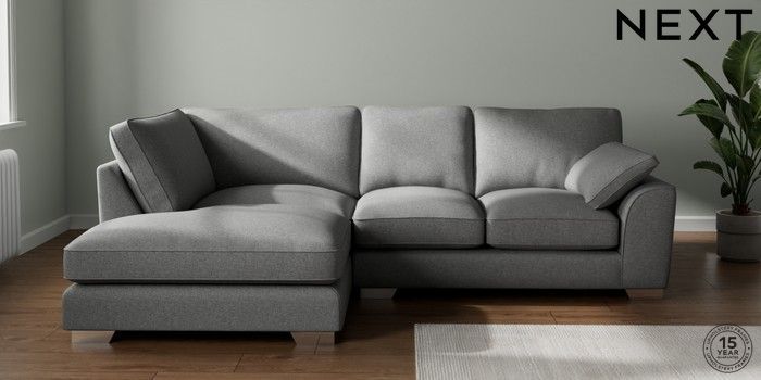 7.3.1 Buy Stamford Grand Relaxed Sit Medium Corner Chaise - Left Hand Chunky Weave Mid Grey Large Square Angle - Chrome Metal from the Seasons online shop Click here to use our website with more accessibility support, for example screen readers