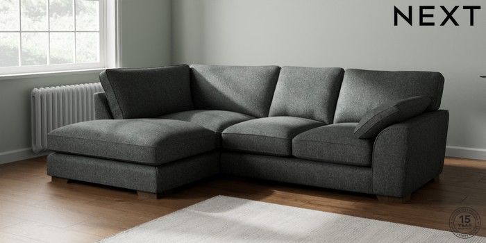7.2.10 Buy Stamford Grand Relaxed Sit Medium Corner Chaise - Left Hand Cotswold Chenille Dark Grey Large Square Angle - Mid from the Seasons online shop Click here to use our website with more accessibility support, for example screen readers