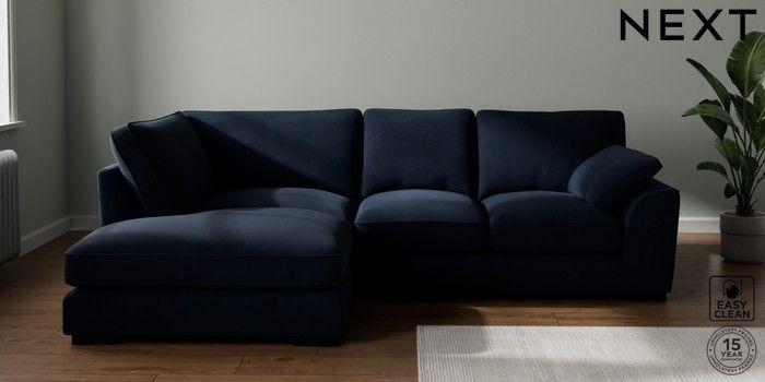 7.3.1 Buy Stamford Grand Relaxed Sit Medium Corner Chaise - Left Hand Fine Chenille Easy Clean Dark Navy Blue Large Square Angle - Dark from the Seasons online shop Click here to use our website with more accessibility support, for example screen readers