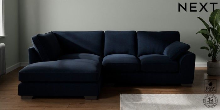 7.3.1 Buy Stamford Grand Relaxed Sit Medium Corner Chaise - Left Hand Fine Chenille Easy Clean Dark Navy Blue Large Square Angle - Gunmetal from the Seasons online shop Click here to use our website with more accessibility support, for example screen readers