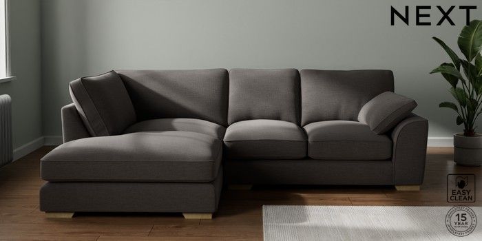 7.3.1 Buy Stamford Grand Relaxed Sit Medium Corner Chaise - Left Hand Fine Chenille Easy Clean Dark Smoke Grey Large Square Angle - Light from the Seasons online shop Click here to use our website with more accessibility support, for example screen readers