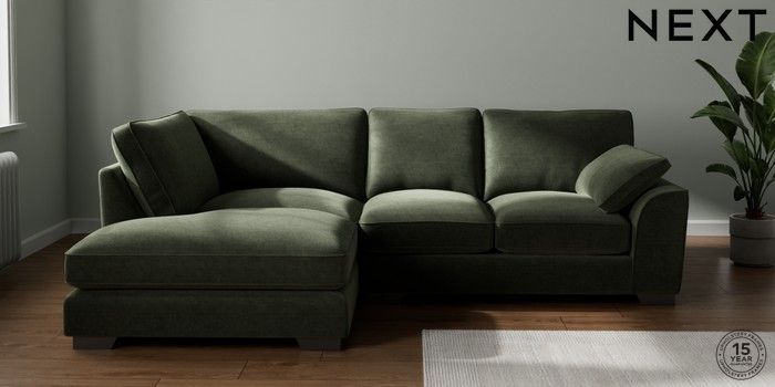 7.3.1 Buy Stamford Grand Relaxed Sit Medium Corner Chaise - Left Hand Luxe Chenille Mid Green Large Square Angle - Gunmetal from the Seasons online shop Click here to use our website with more accessibility support, for example screen readers