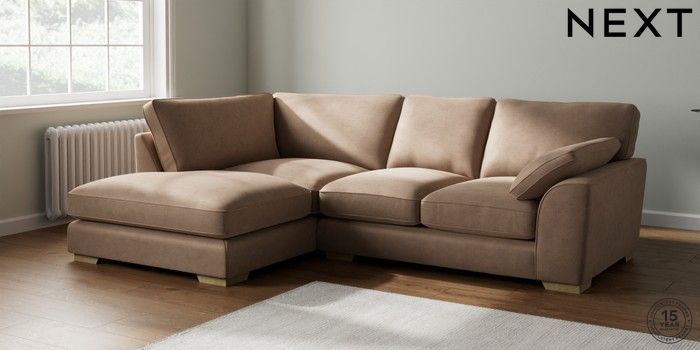 7.2.10 Buy Stamford Grand Relaxed Sit Medium Corner Chaise - Left Hand Luxe Chenille Mid Natural Large Square Angle - Light from the Seasons online shop Click here to use our website with more accessibility support, for example screen readers