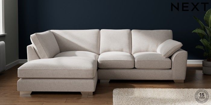 7.3.1 Buy Stamford Grand Relaxed Sit Medium Corner Chaise - Left Hand Multi Weave Oyster Large Square Angle - Chrome Metal from the Seasons online shop Click here to use our website with more accessibility support, for example screen readers
