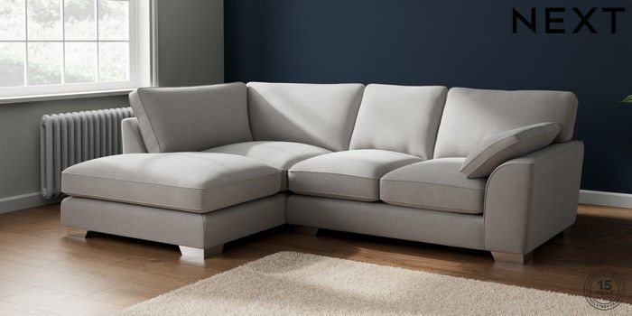 7.3.1 Buy Stamford Grand Relaxed Sit Medium Corner Chaise - Left Hand Natural Mix Light Grey Large Square Angle - Chrome Metal from the Seasons online shop Click here to use our website with more accessibility support, for example screen readers