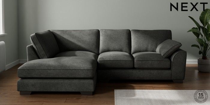 7.3.1 Buy Stamford Grand Relaxed Sit Medium Corner Chaise - Left Hand Plush Chenille Dark Grey Large Square Angle - Gunmetal from the Seasons online shop Click here to use our website with more accessibility support, for example screen readers
