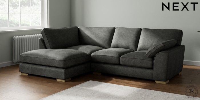 7.2.10 Buy Stamford Grand Relaxed Sit Medium Corner Chaise - Left Hand Plush Chenille Dark Grey Large Square Angle - Light from the Seasons online shop Click here to use our website with more accessibility support, for example screen readers