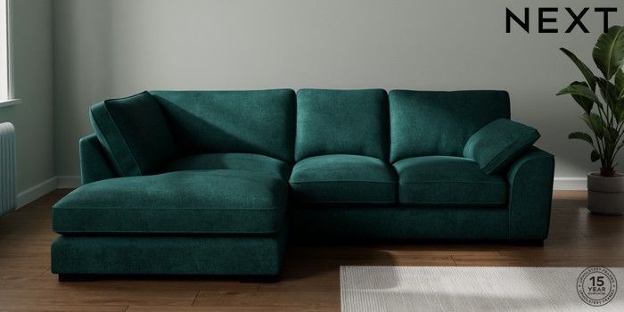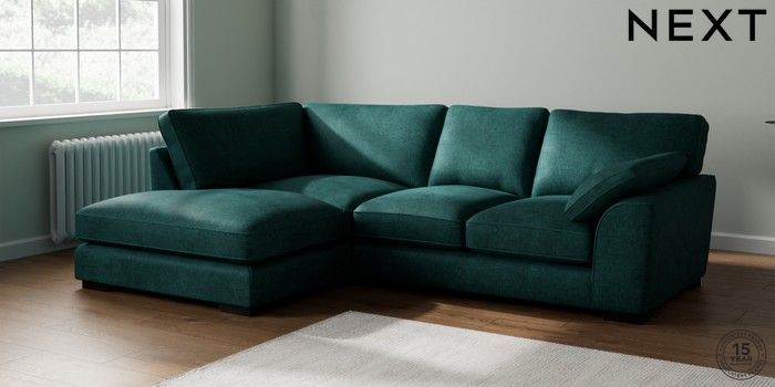 7.3.1 Buy Stamford Grand Relaxed Sit Medium Corner Chaise - Left Hand Plush Chenille Dark Teal Green Large Square Angle - Dark from the Seasons online shop Click here to use our website with more accessibility support, for example screen readers