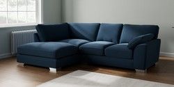 7.3.1 Buy Stamford Grand Relaxed Sit Medium Corner Chaise - Left Hand Plush Velvet Easy Clean Airforce Blue Large Square Angle - Chrome Metal from the Seasons online shop Click here to use our website with more accessibility support, for example screen readers
